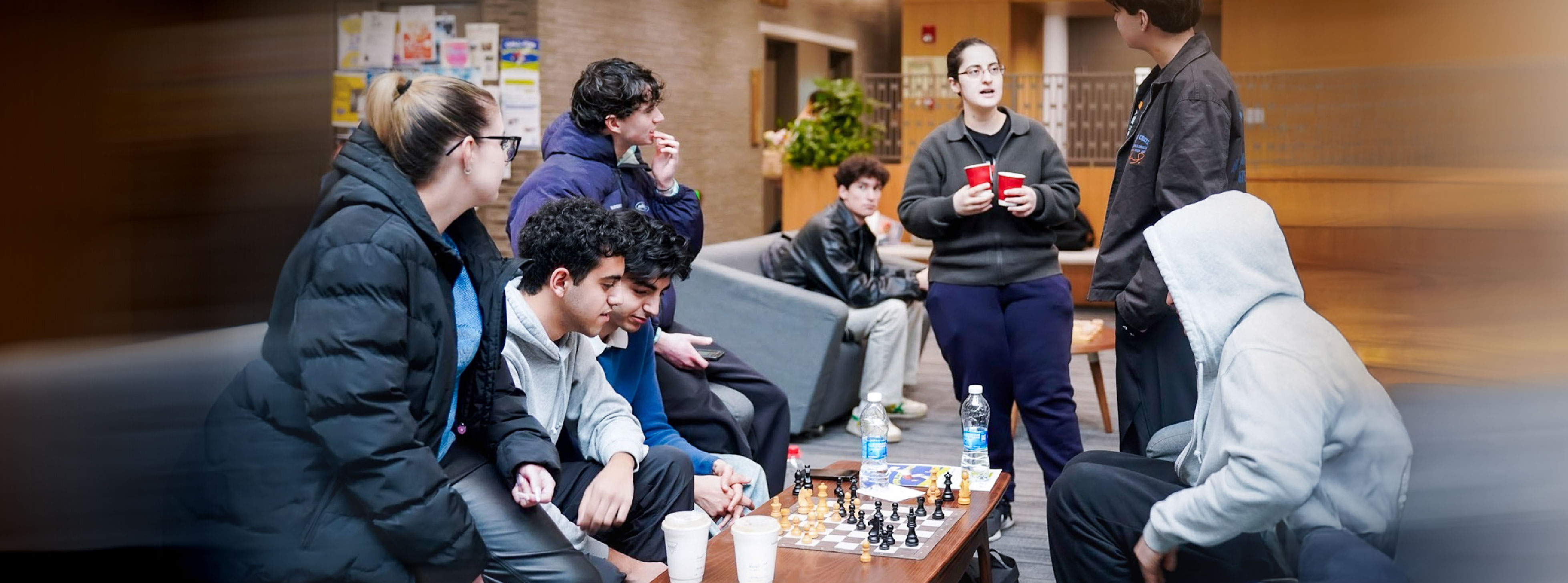 On Wednesday morning, the launch event of In Real Life attracted a curious crowd of community members to Magnolia House for an unexpected start to the day, a chess match pitting good-natured game enthusiast Vice Chancellor Jeff Lehman against 15-year old William Ge, NYU ’28, a member of the US Chess Team, who previously ranked Number 1 in the US and Number 13 globally for his age group.